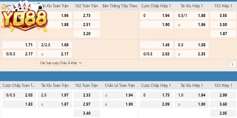 - Nếu anh em tin rằng tổng số bàn thắng sẽ vượt qua con số mà YO88 đưa ra, thì lựa chọn sẽ là Tài.